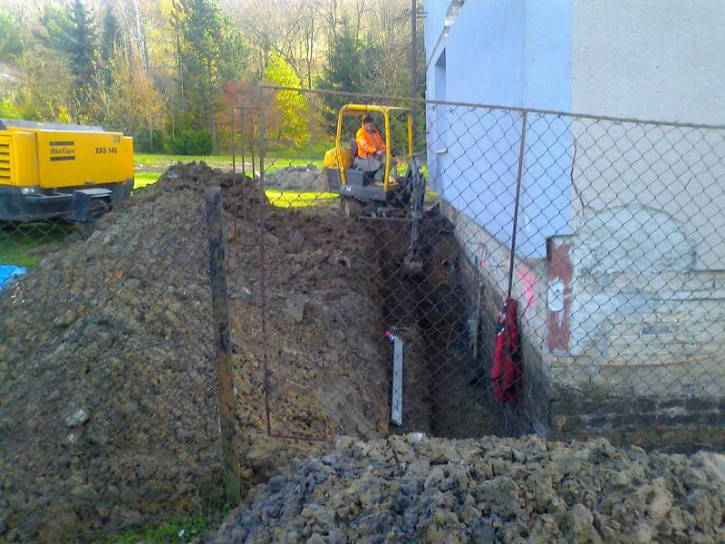 Uložení drenážní hadice včetně štěrku a geotextilie